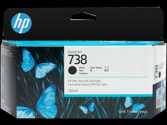 498P2A: Hộp mực đã có mực in HP 738B 130-ml Black DesignJet Ink Cartridge